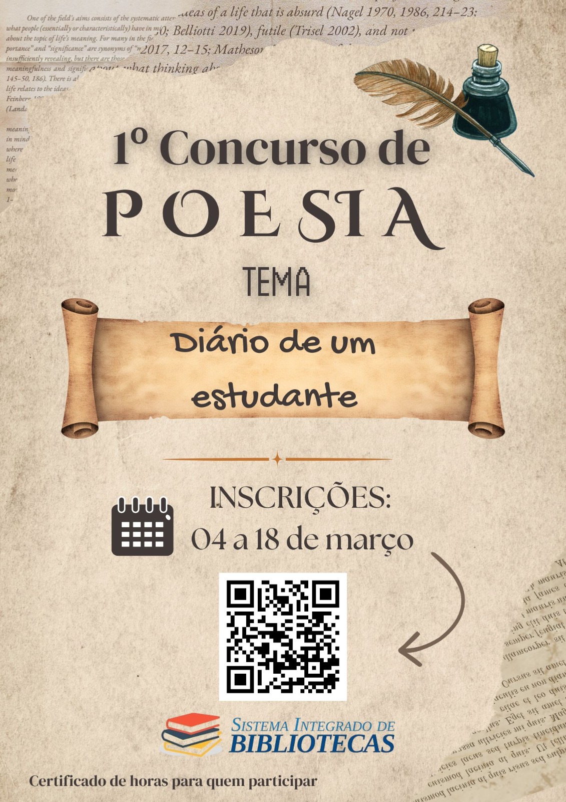 As Bibliotecas Funorte, Fasi, Funam, Facic, Fac e Promove Sete Lagoas, que integram o Sistema Integrado de Bibliotecas, promovem o Concurso de Poesia, com o objetivo de incentivar a produção literária, a leitura, a criatividade e a expressão artística dos acadêmicos, fortalecendo o vínculo entre a biblioteca, a comunidade acadêmica e as ações de extensão universitária. O concurso integra as atividades de extensão, possibilitando a certificação de horas complementares/extensão aos participantes, conforme as normas institucionais... Leia [+]
